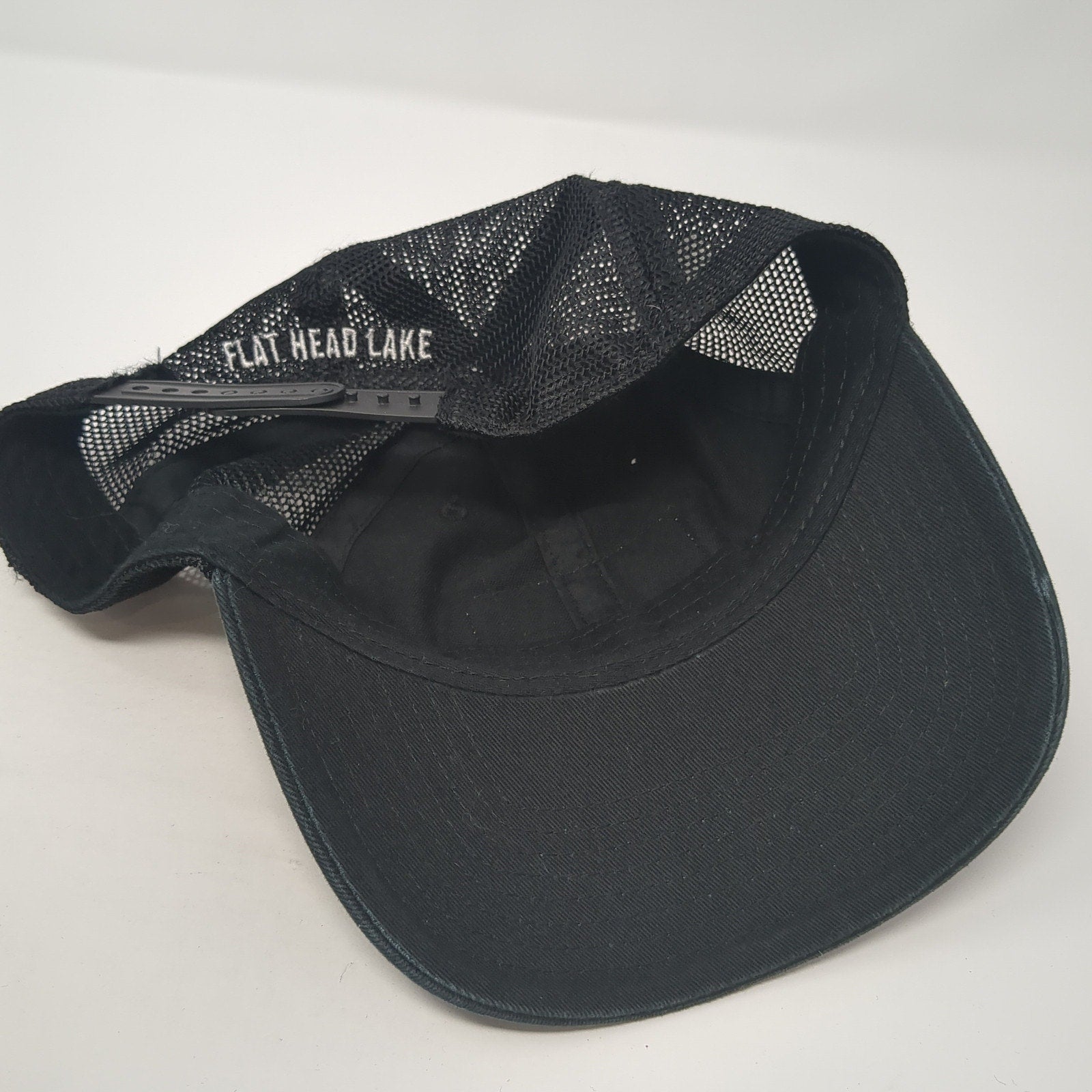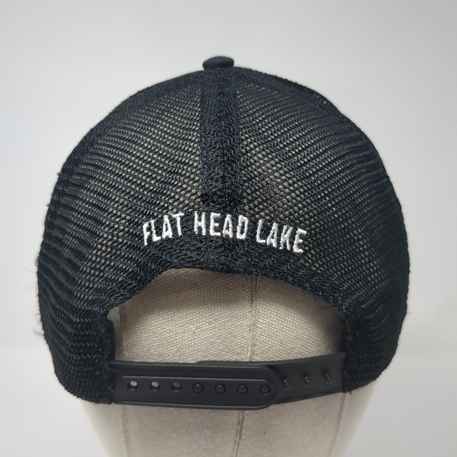 Spartan Flat Head Lake Montana Trucker Hat Black One Size Adjustable Mesh Back