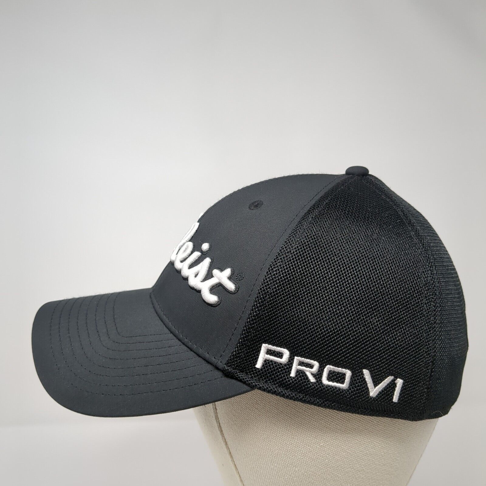 Titleist Fitted Mesh Back Hat Black M/L Embroidered Solid Vent Holes