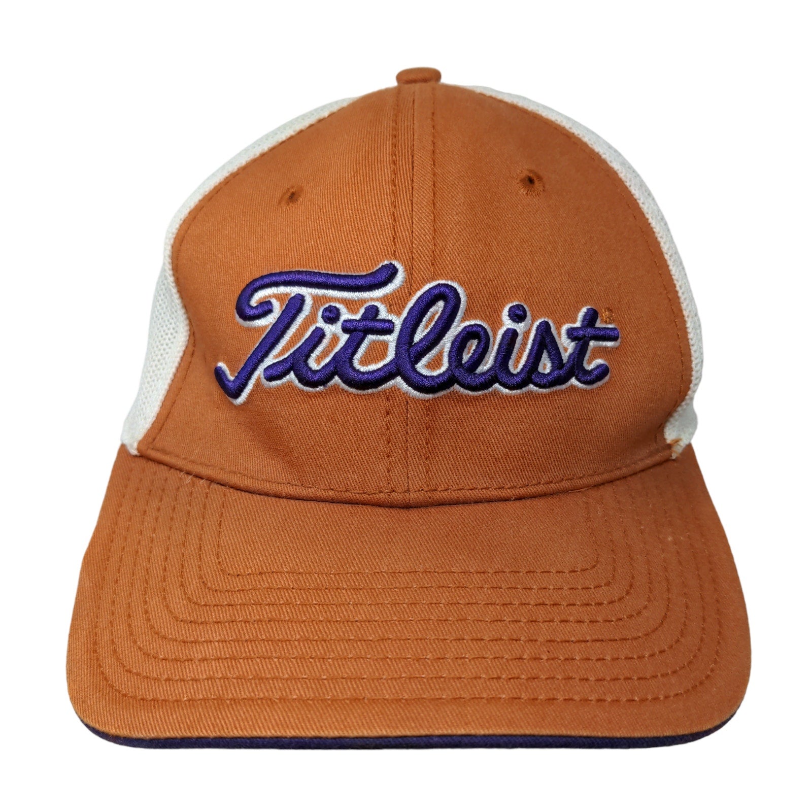 Titleist Men's Fitted Mesh Back Hat Orange White Size L/XL Embroidered Golf Logo