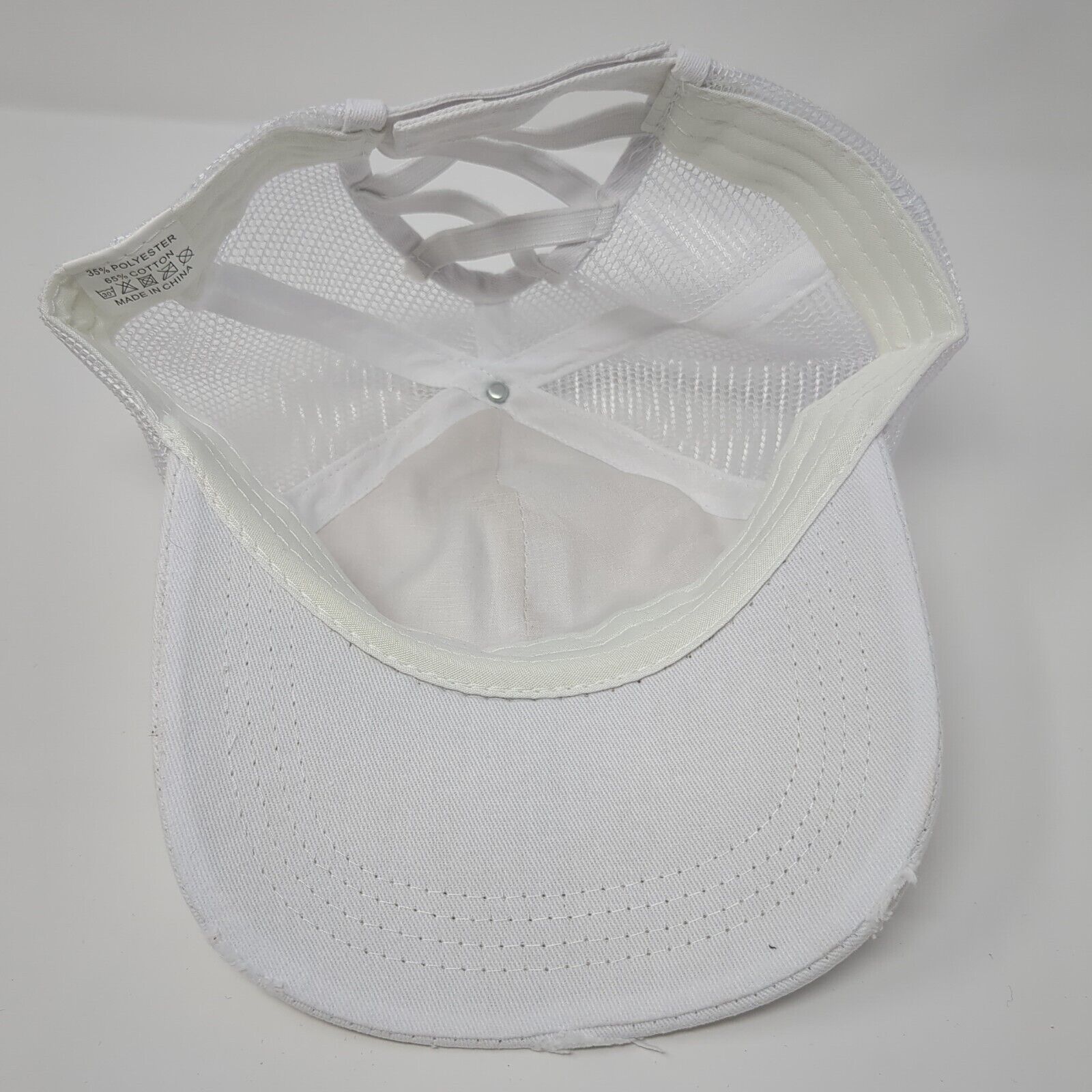 Unbranded Ponyback Strapback Trucker Hat White OS Adjustable Distressed Blank