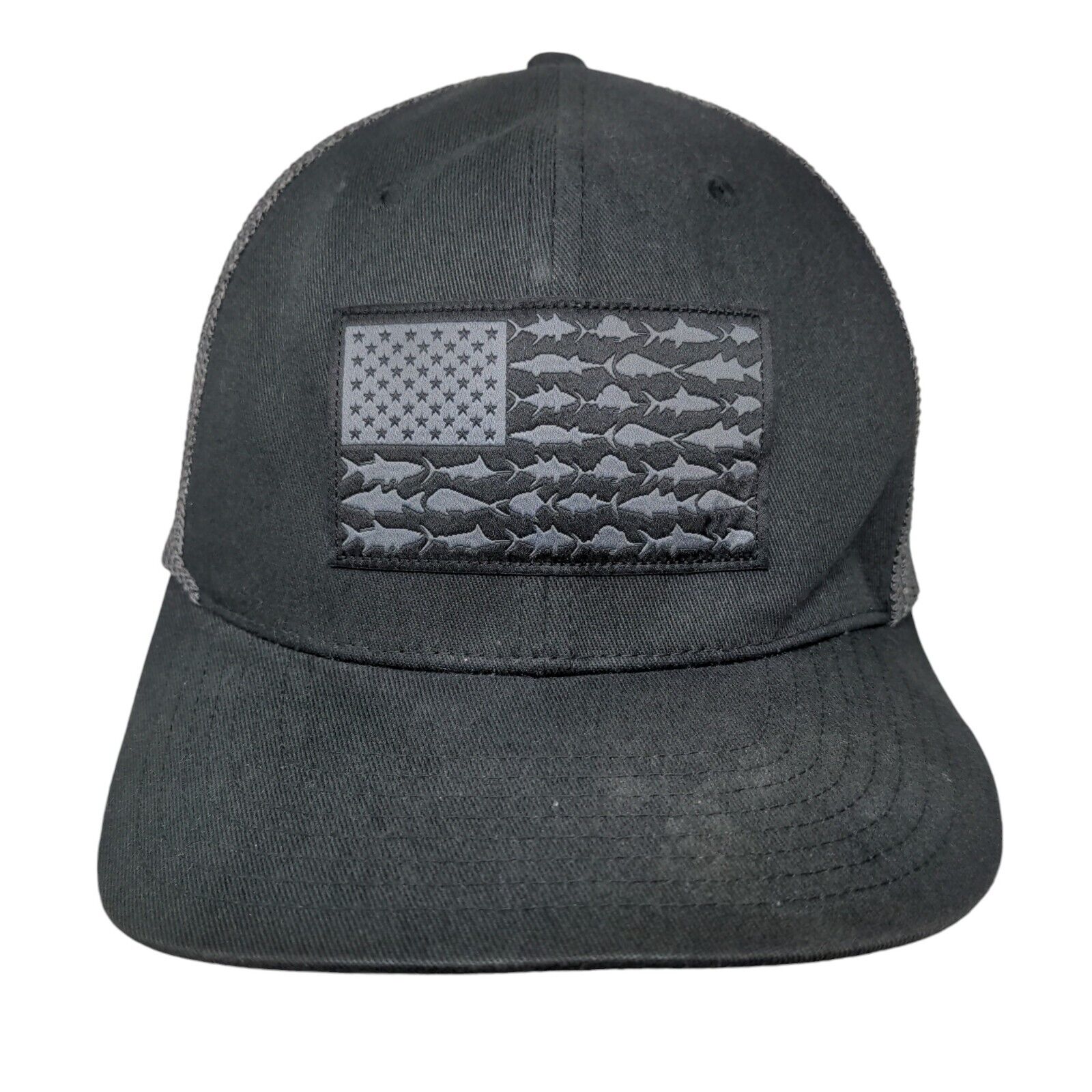 USA Flag Fish Unisex Fitted Trucker Hat Gray L/XL Mesh Back Columbia PFG