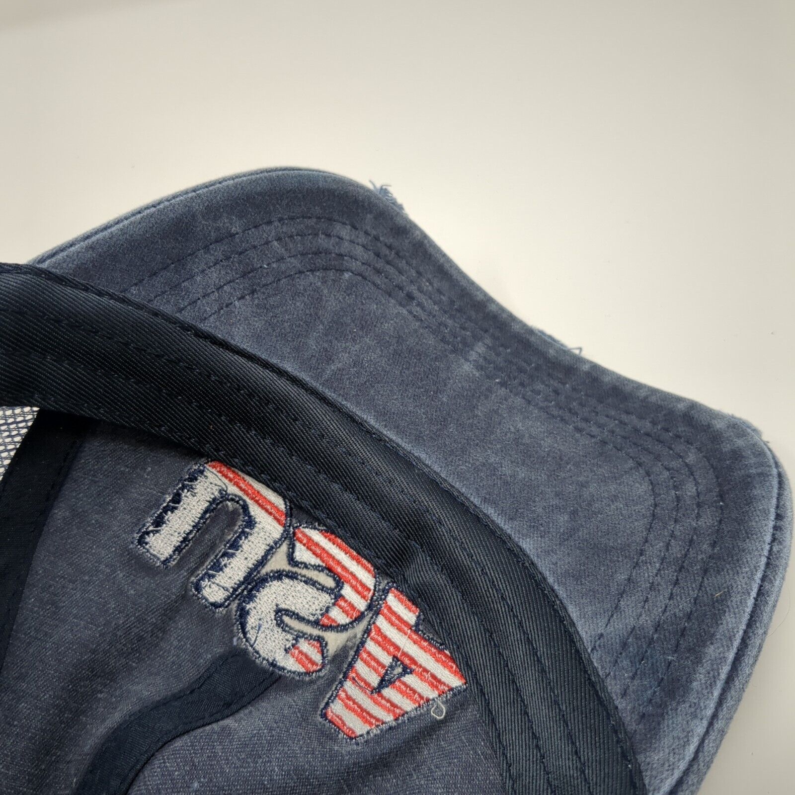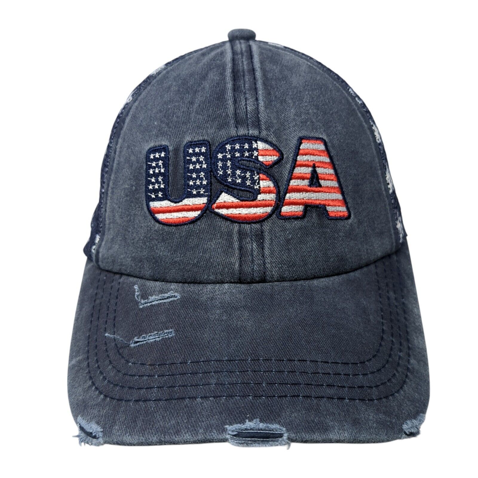 USA Strapback Trucker Hat Blue OS Adjustable Patriotic Distressed Mesh Back