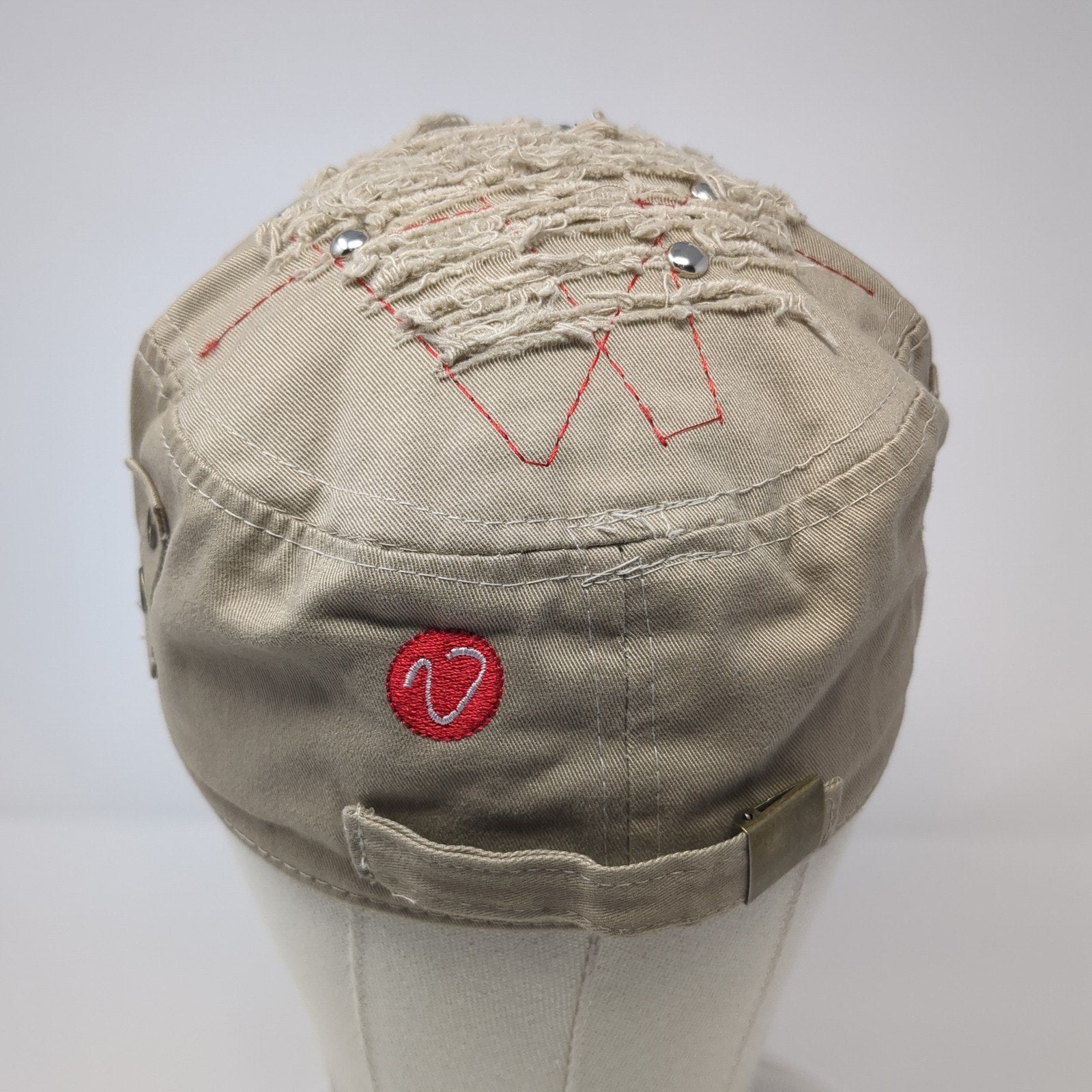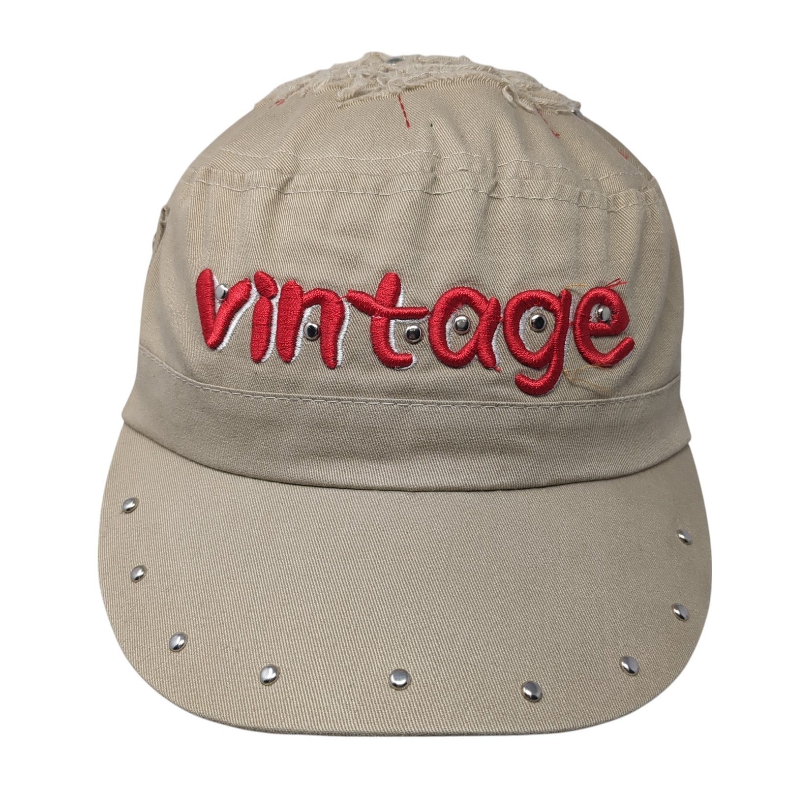 Vintage Cadet Army Cap Brown One Size Adjustable Embroidered Distressed Studded