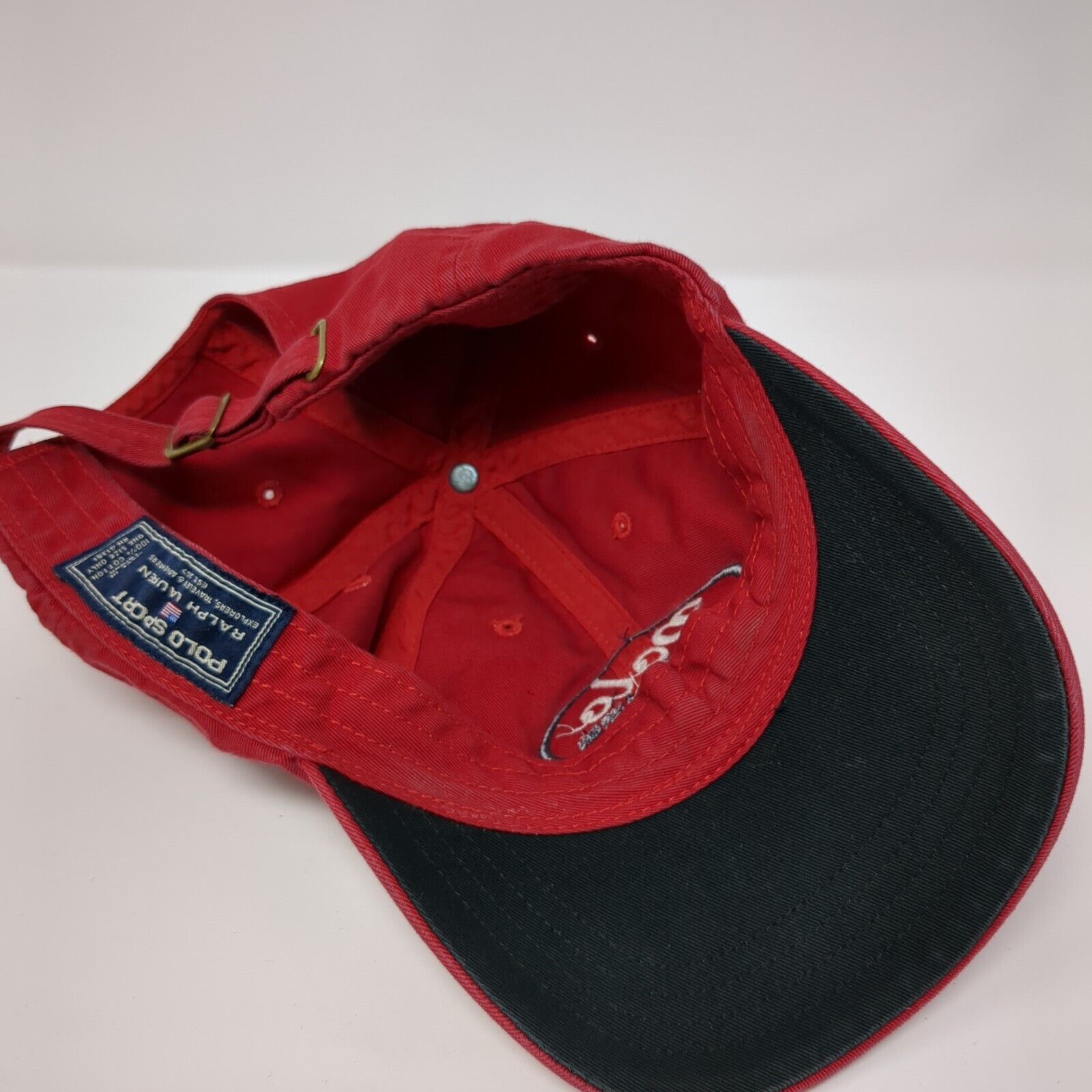 Vintage Polo Sport Ralph Lauren Slideback Hat Red Embroidered Logo 100% Cotton