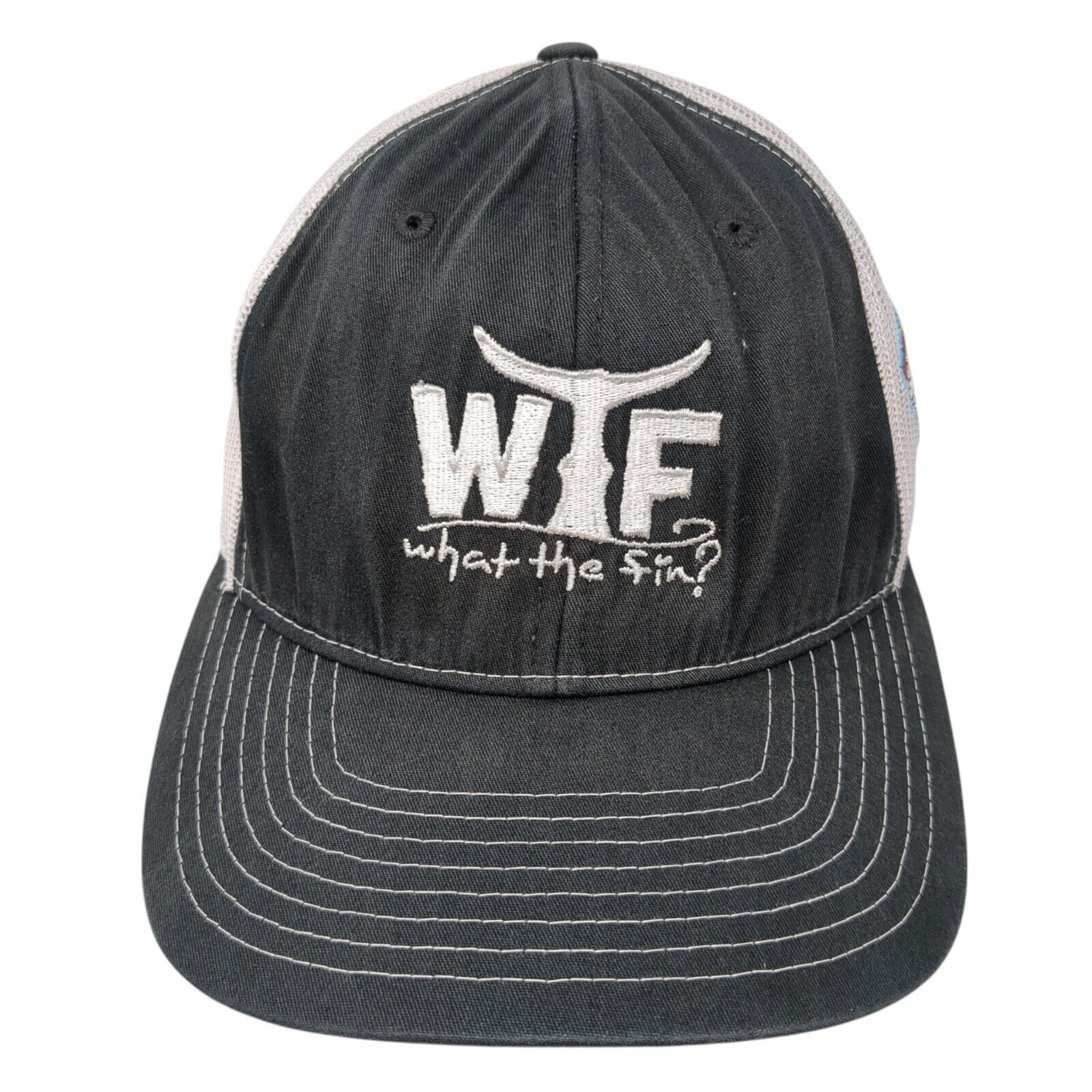 WTF What The Fin? Snapback Trucker Hat Blue OS Adjustable Mesh Back Richardson