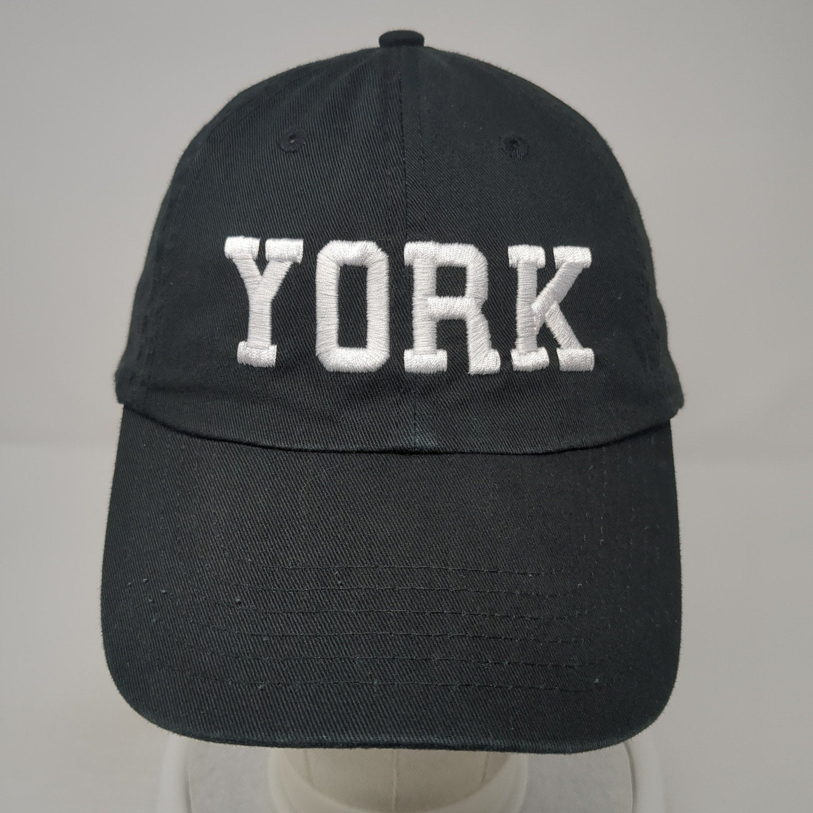 York Spell Out Slideback Hat Black One Size Adjustable Embroidered