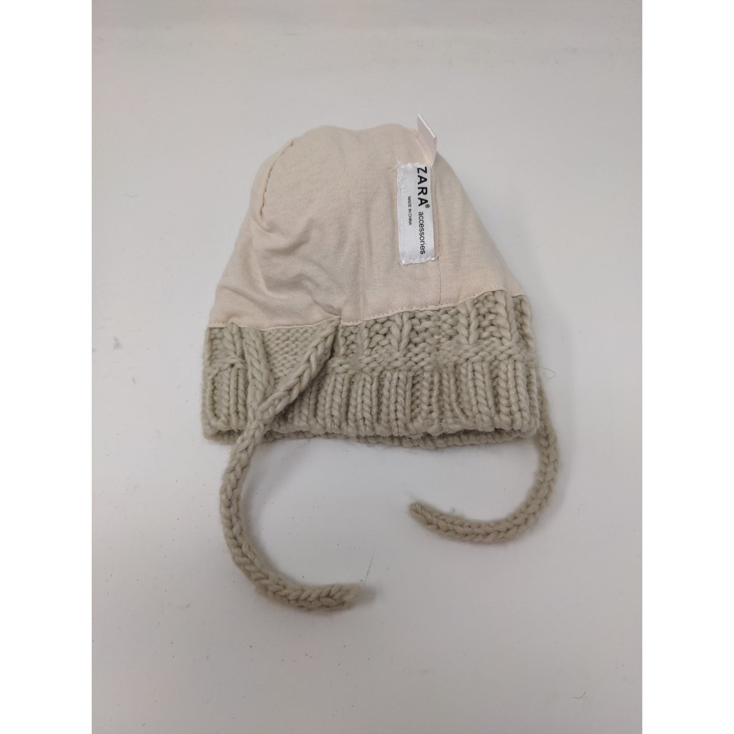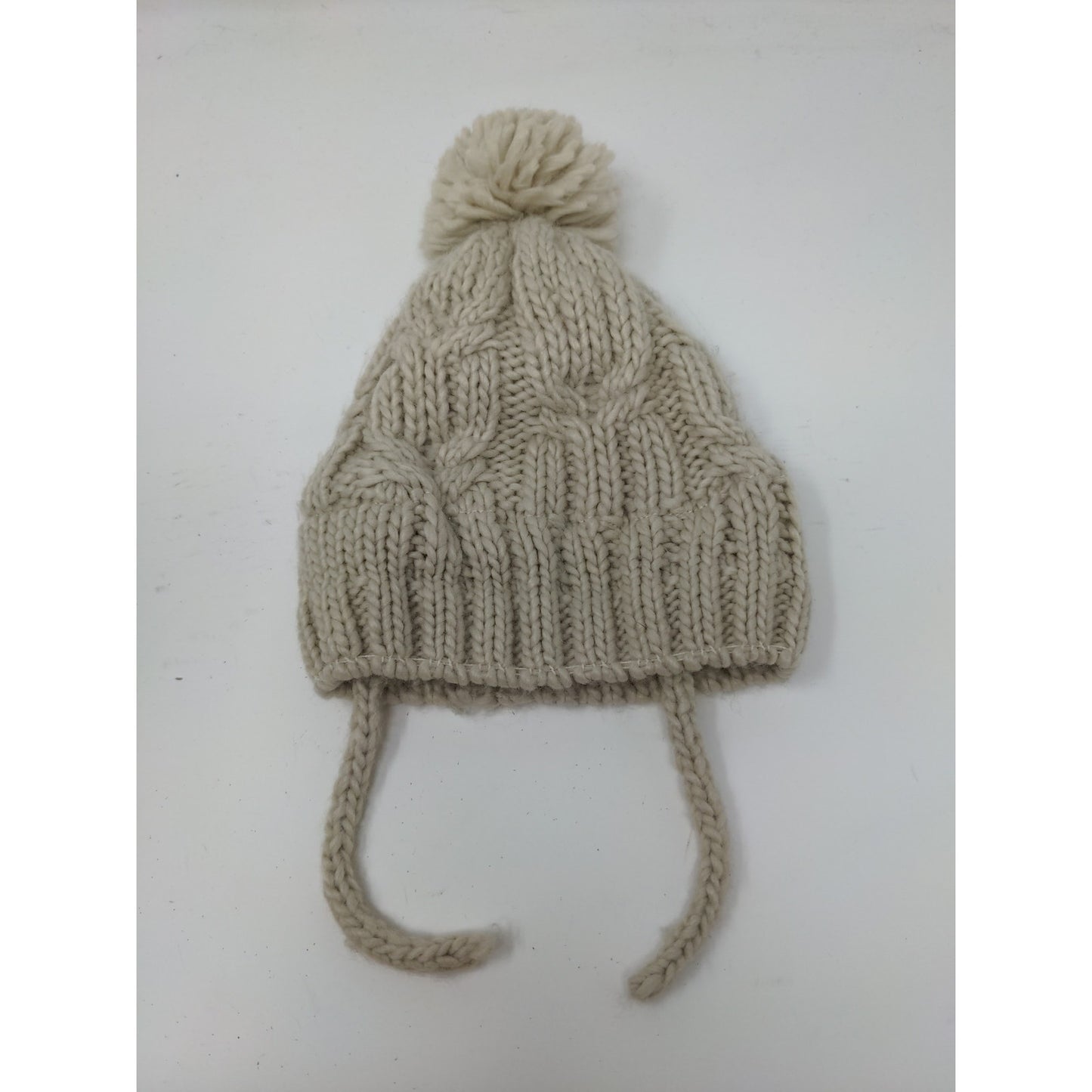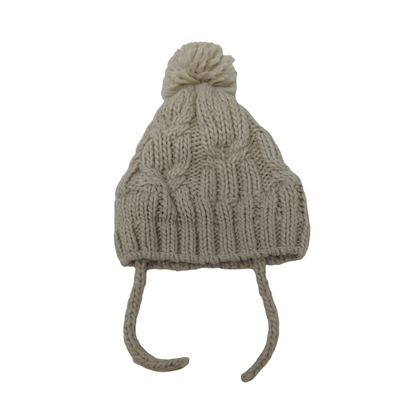 Youth Girls Zara Cable Knit Beanie Hat Pom Pom Cream Chin Ties